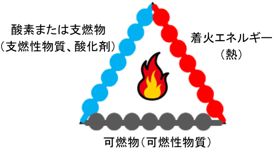 火の三角形(出典:消防庁消防大学校消防研究センターHPより)